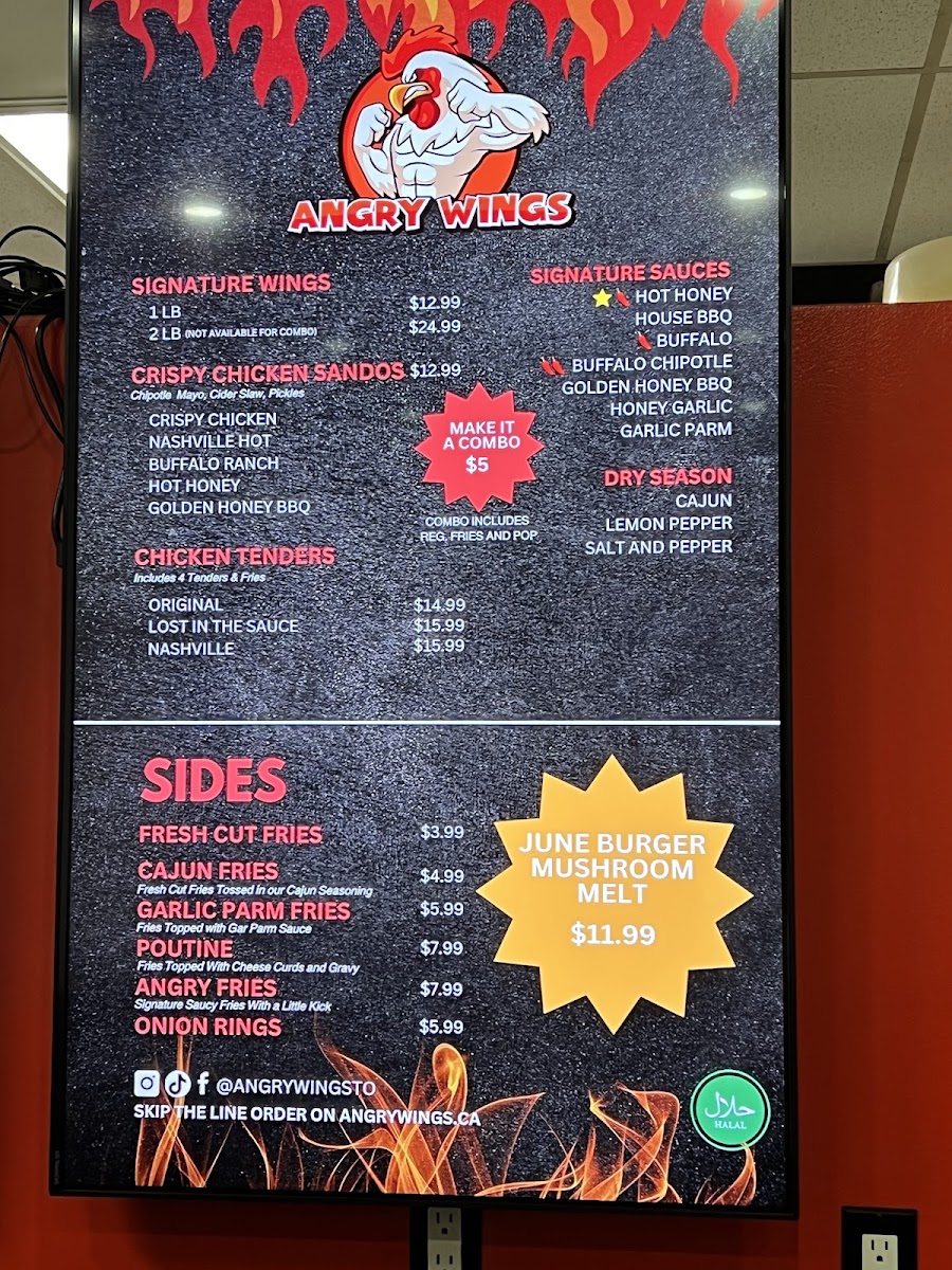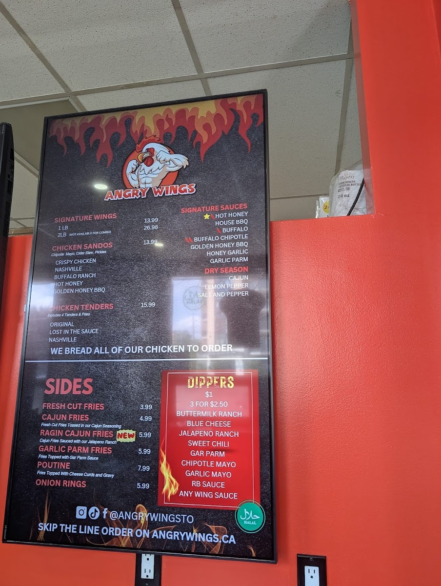 Angry Wings Menu