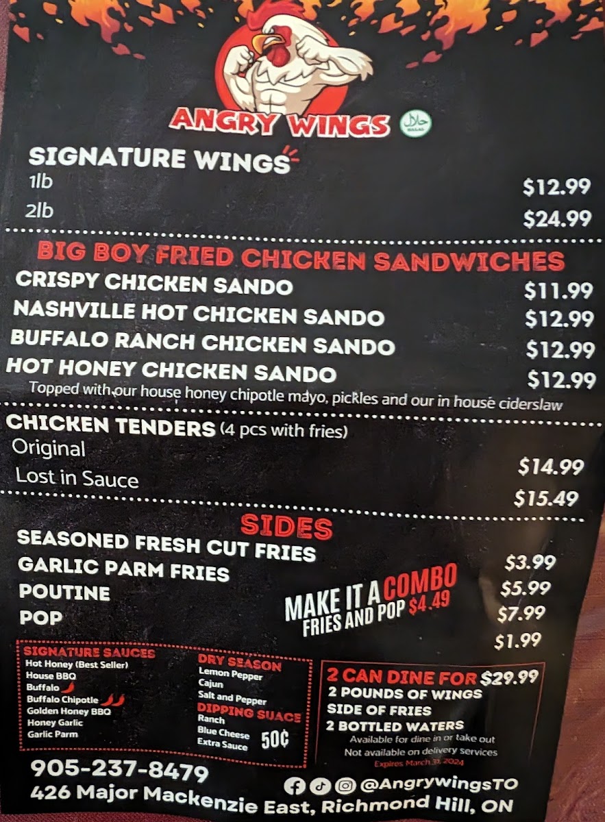 Welcome to Angry Wings, the go-to destination for chicken wing lovers in Richmond Hill, Canada. Located at 426 Major Mackenzie Dr E, this vibrant eatery specializes in mouthwatering wings that are fresh, never frozen, and fried to perfection. Each wing is tossed in a variety of signature sauces, including fan favorites like Hot Honey and Buffalo Chipotle, catering to every taste preference.